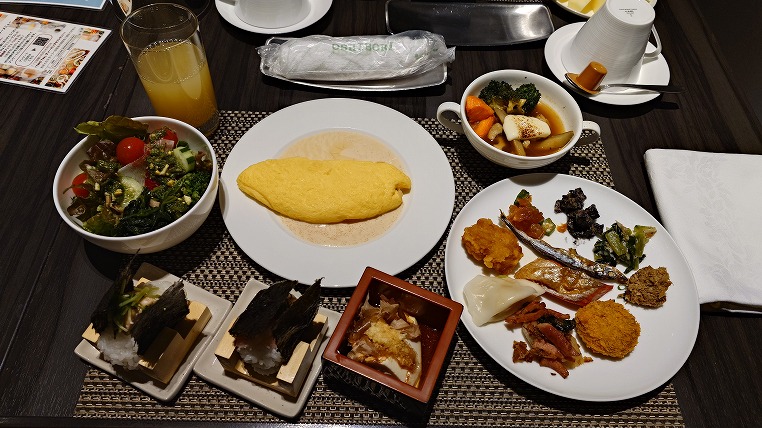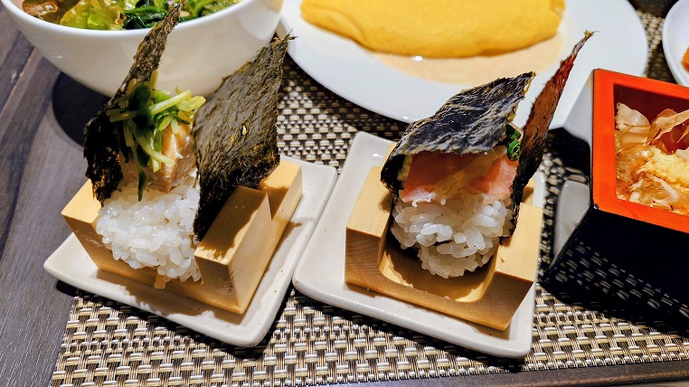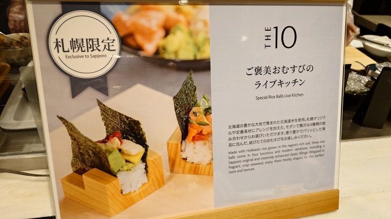 おそらくは日本国内全国のANAクラウンプラザ共通施策だと思うのですが「THE 10」と呼ばれる注目メニューを軸にビュッフェを提供する形に変わっています。あらたにオーダーおむすびのコーナーもできていました。意外と外国人にも喜ばれるかもですね。