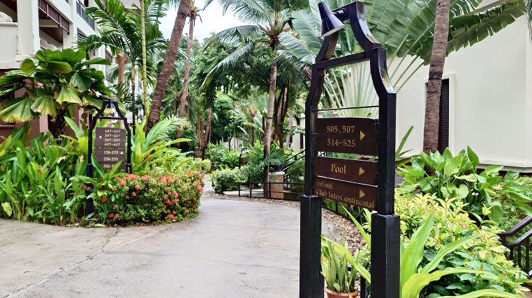 それほど広いリゾートではありませんので私たちが滞在しているお部屋からフロントへは普通に歩いて行ける距離です。雨でも降っていない限りは、いや降っていてもカートを呼ぶほうが面倒なくらいですね。