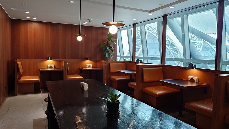 広さこそ違うもののこのあたりの造りは羽田のキャセイラウンジと変わりません。香港の街の食堂をラウンジにふさわしいインテリアに再構築した感じです。