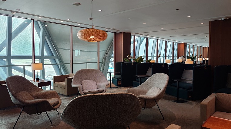キャセイラウンジはこういうゆとりが良いですね。ANAのラウンジならこの4人スペースで10席ぐらい押し込みそうです。羽田のキャセイラウンジもJALのファーストラウンジより居心地が良いと感じることも少なくありません。このような上質なサービスを提供していながら経営があまり思わしくないのが心配です。