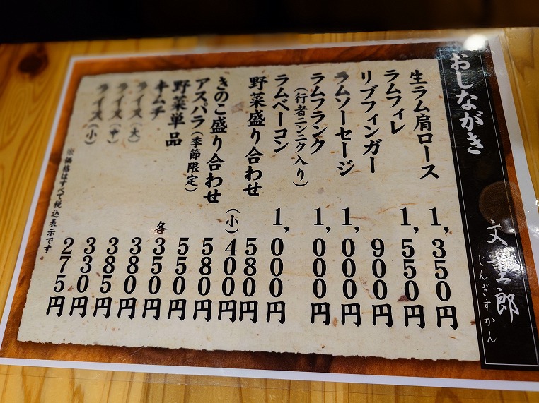 メニューもシンプルです。基本は生ラム肩ロースがメインです。