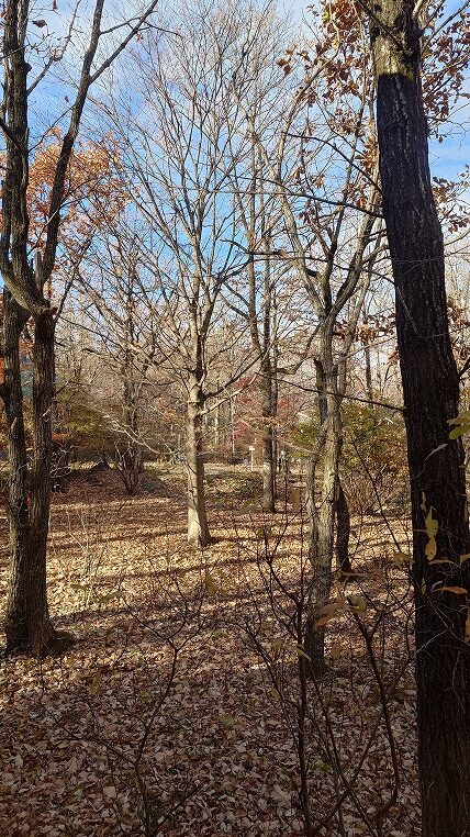 朝目覚めると別宅の窓の外はすっかり晩秋の感じです。