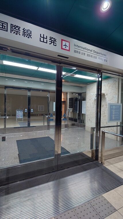 夜遅くにチェックインしたので既に国際線ターミナルの営業は終了しており、その場合はターミナル入口にあるインターホンを押して鍵を空けてもらう必要があります。