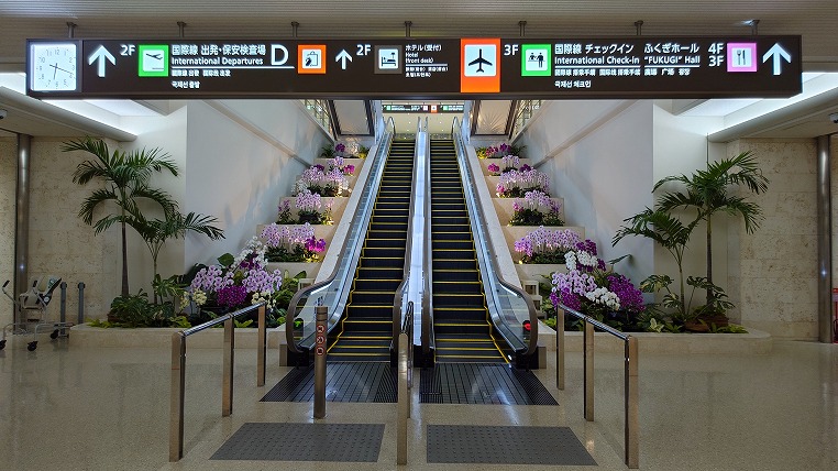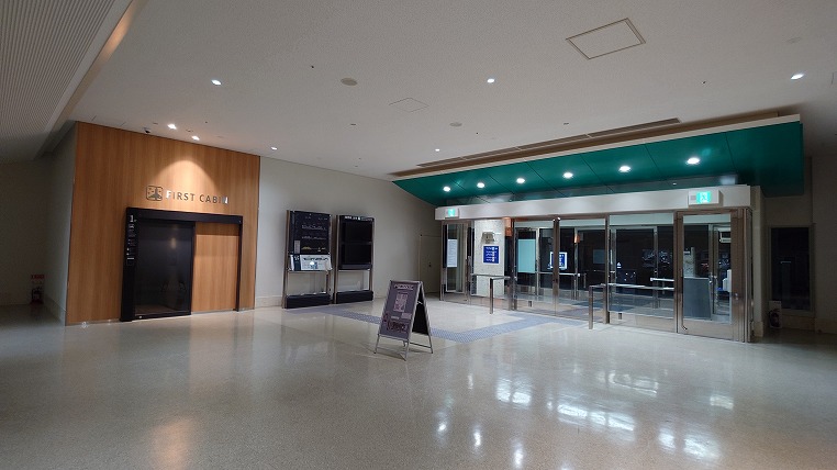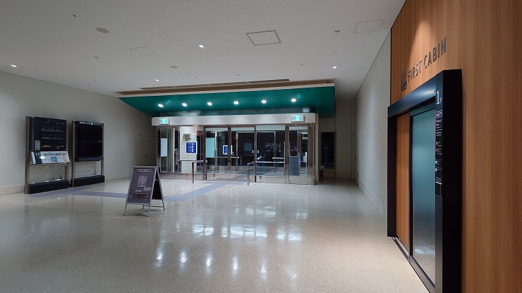 夜間(朝6時まで)はこのエスカレーターはシャッターが下りていて2階のチェックインカウンターに行くには裏側に回ってエレベーターを利用するしかありませんでした(写真は翌朝に撮ったものです)。男性の場合はキャビンが1階、シャワールームが2階に分かれてしまうのが不便に感じました(女性はどちらも同じ階)。