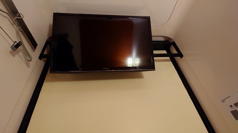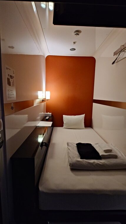 ビジネスクラスキャビンの室内。あくまでも簡易宿泊施設のカテゴリーなので鍵は掛かりません。