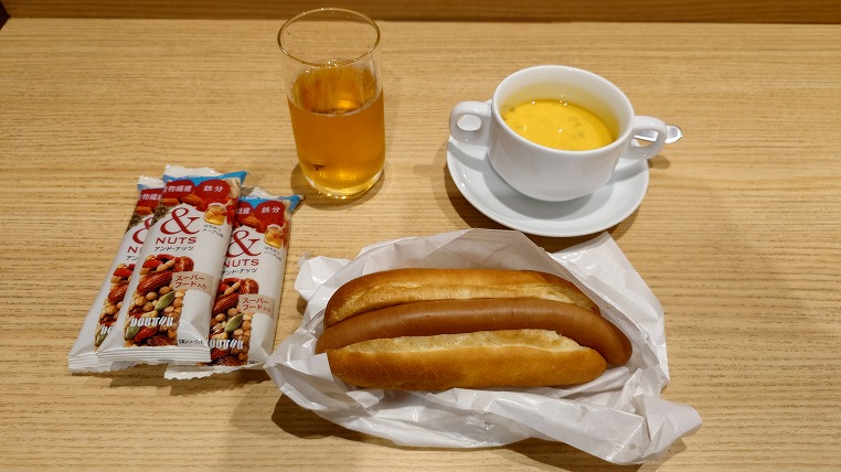宿泊プランにはドトールの朝食券が1000円分付いていて、ジャーマンドックやエナジーバーに交換することができました。