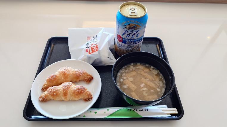 ラウンジのサービスは低下するばかりで寂しいものですね。クロワッサンは小さいので2つとりました。