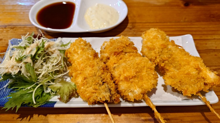そしてマグロの串カツ。これまたビッグザイズ。アジももちろん良いですよ。