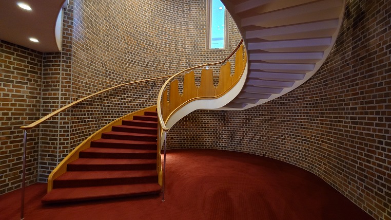 村野建築に時々登場する螺旋階段。