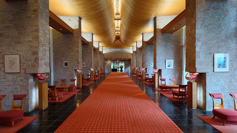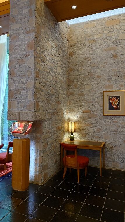 贅沢なパブリックスペースの造りですね。コスパばかりが求められる今のホテル建築ではこういった余白ともいえる空間は削られがちです。