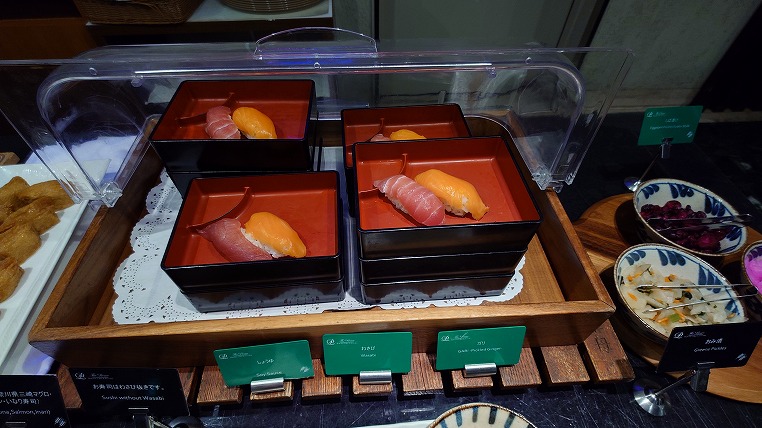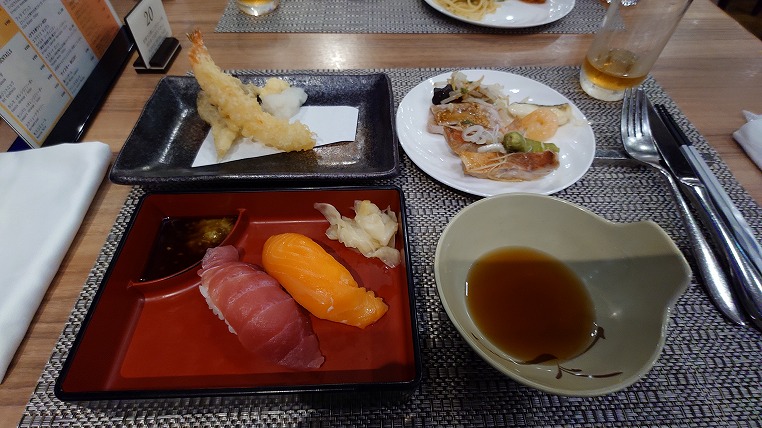 ビュッフェの内容に過度な派手さはないのですが、天ぷらや鮨のライブキッチン、ローストビーフの切り分けサービスなどポイントはすべておさえた内容ですし、全体的な味のレベルも悪くはありませんでした。イメージしていたよりも充実の夕食でした。