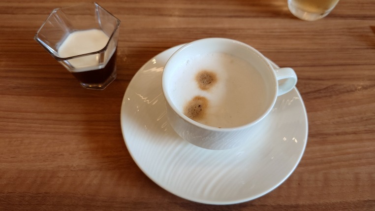 食後はコーヒーを。JAL国内線ファーストのそれは機内で飲むものとしてはかなりレベルが高いです。
