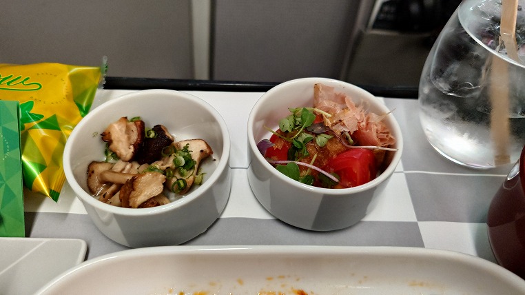 この日の機内食はNOBUでした。さすがにこなれているというか、機内食でも美味しく食べられる内容でした。