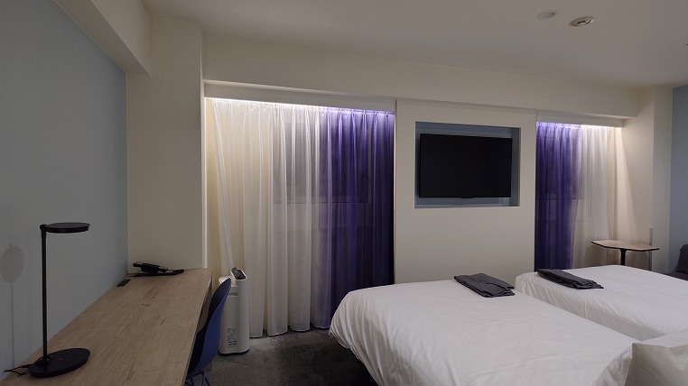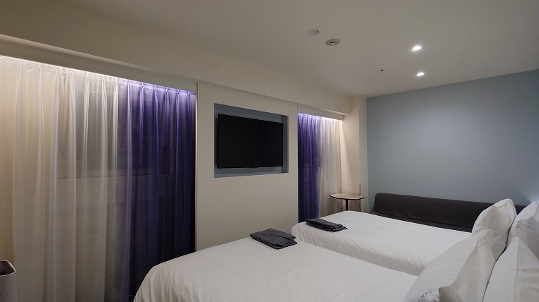お部屋の中はベッド2台を置くとあまり余裕はなく30平米あるのかな?という感じです。