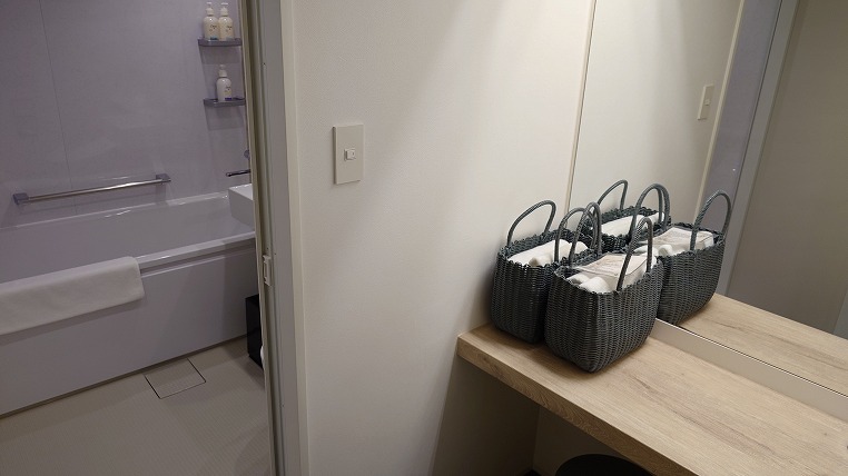 大浴場へは部屋からタオルを持っていきます。ミニバックがあるのは便利です。