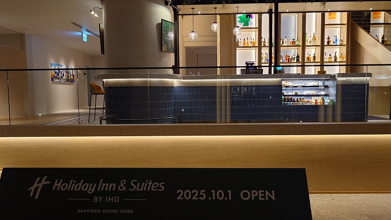 インターコンチネンタル札幌と同一開業日だったのがこちら「ホリデイ・イン&スイーツ札幌大通公園」です。IC札幌が大々的に地元メディアで紹介されているにもかかわらずこちらはほとんど話題にもならず、実際に宿泊するまでは心情的にはこちらに同情する気持ちもなくはありませんでした。たぶん2025年秋、IHG系のホテルが一気に2軒開業と言いたかっただけのような気もしますが。
