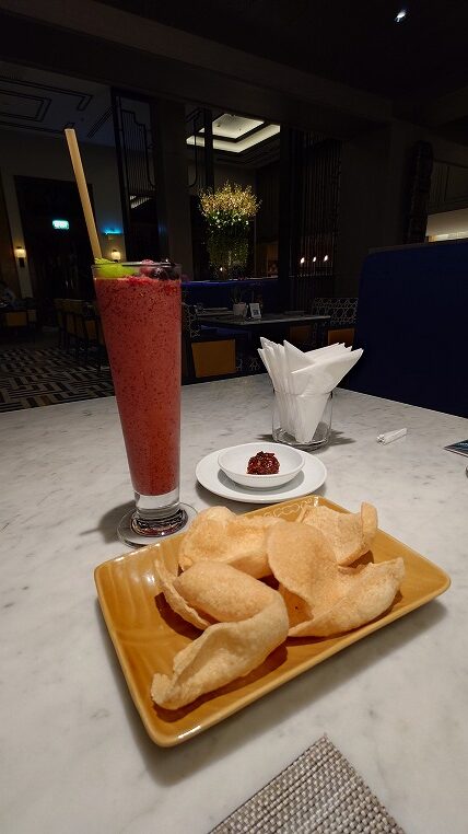 後でラウンジにも立ち寄るのでここではノンアルコールで。ベリーのスムージーは本当にベリーたっぷりで予想を超える美味しさでした。