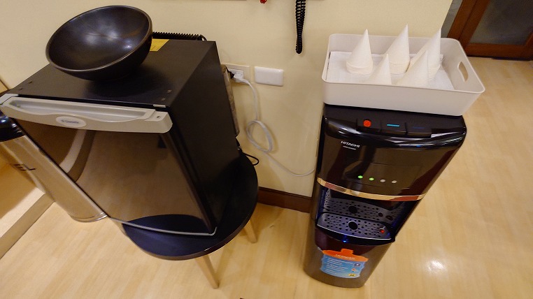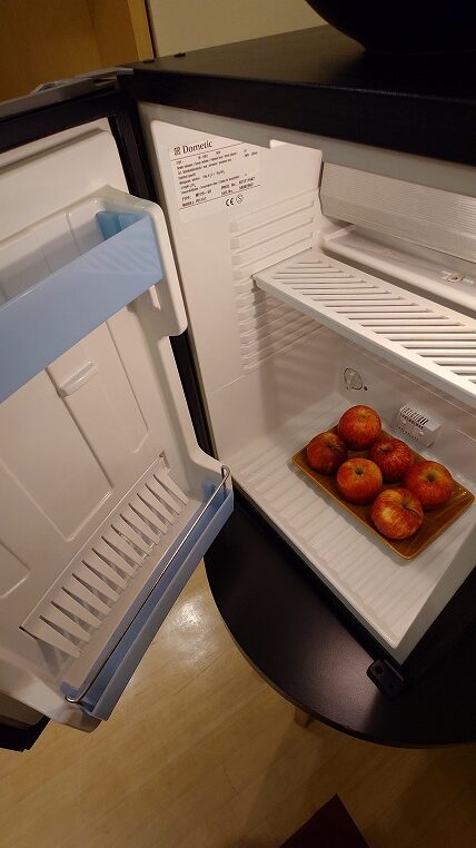 お水や何故か冷蔵庫の中にリンゴも入っています。
