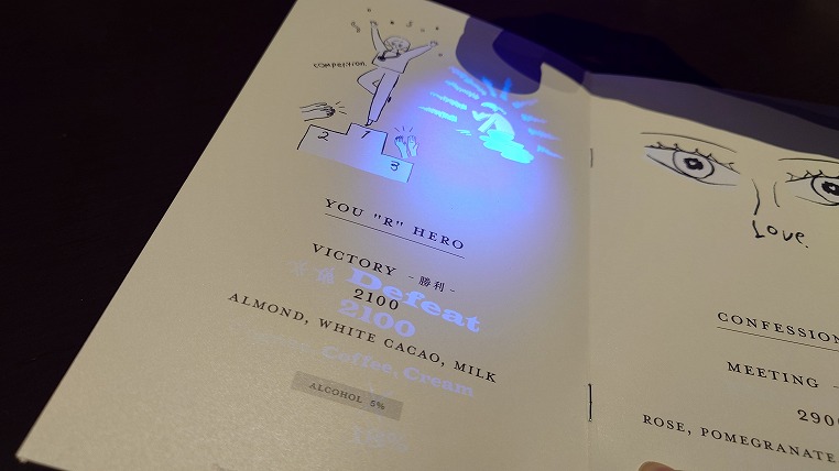 メニューはライトを当てると違った意味のメニューが出てきます。