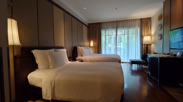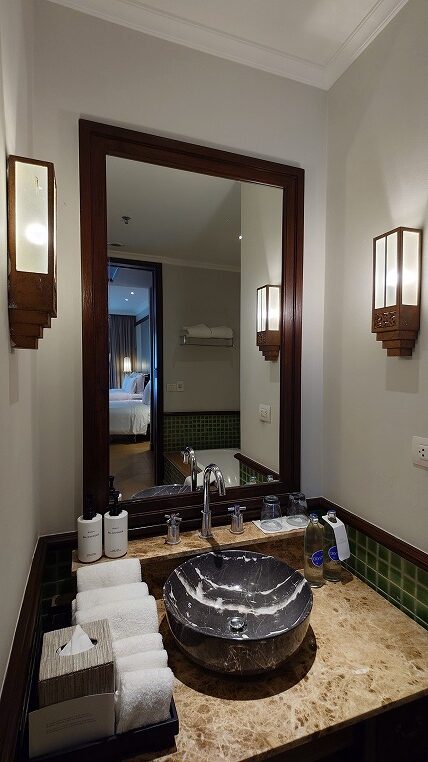 今回到着したのが朝ですからさすがにまだ本来のジュニアスイートのお部屋の準備ができておらず、それまでの間に仮で休憩するお部屋を午前中にアサインいただきました。さすがにずーっとクラブラウンジにいるわけにもいかないので有難いことです(もしそうならパタヤ市街地に出かけるつもりでしたが)。