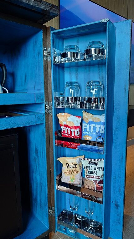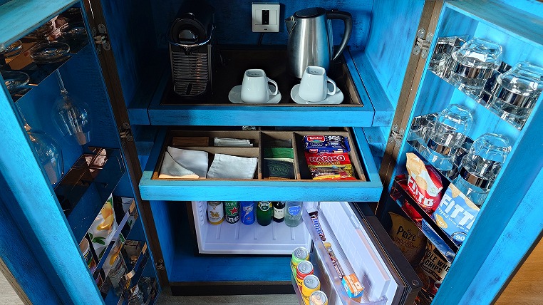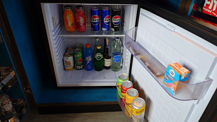 いささか大げさな造りのミニバー。でもホテルらしくて良いですね。