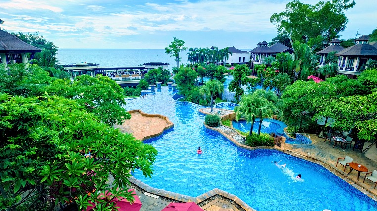 こちらのジュニアスイートのお部屋に宿泊するのも前回の滞在に続き2回目です。というかもしかしたら前回と全く同じ部屋番号かもしれません。オーシャンビューというよりはパーシャルオーシャンビュー的なのも同じですし。