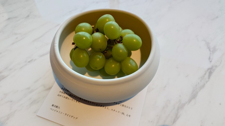 これも開業記念だからでしょうか。シャインマスカットがウェルカムフルーツで置かれていました。甘くておいしかったですね。
