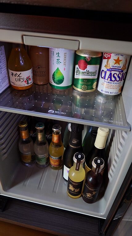 冷蔵庫の中は盛りだくさんです。ビールはサッポロクラシックとピルスナーウルケルという珍しい取り合わせ。