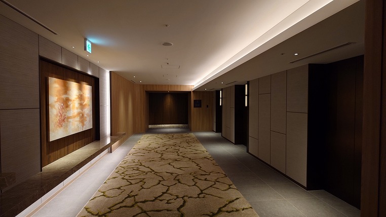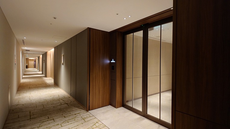 カクテルタイムになりましたのでお部屋からエレベーターホールの前を通ってラウンジのある場所へ。ラウンジと同じ階なのは何かと便利です。