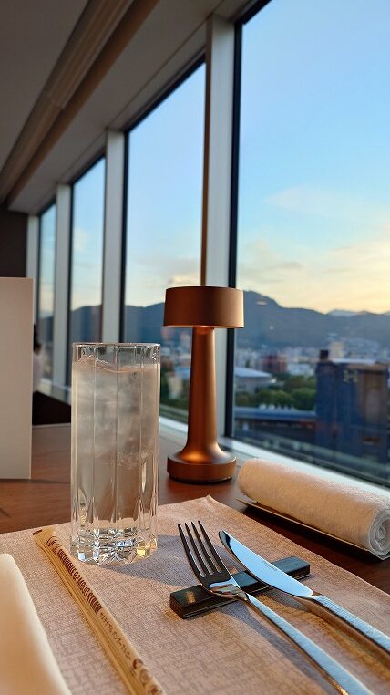 この時期の札幌は急速に日の入りが早くなります。カクテルタイムが始まるころにはだいぶ日が傾いていました。