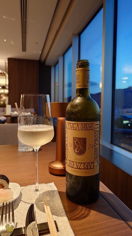 ソムリエ資格をお持ちの女性の方からおすすめされた山梨の勝沼醸造のワイン「アルバブランカ クラレーザ」。JALの機内食でアルバブランカ ピッパのほうを飲んだことがありますね。他にも何度かいくつかの種類を飲んでいます。