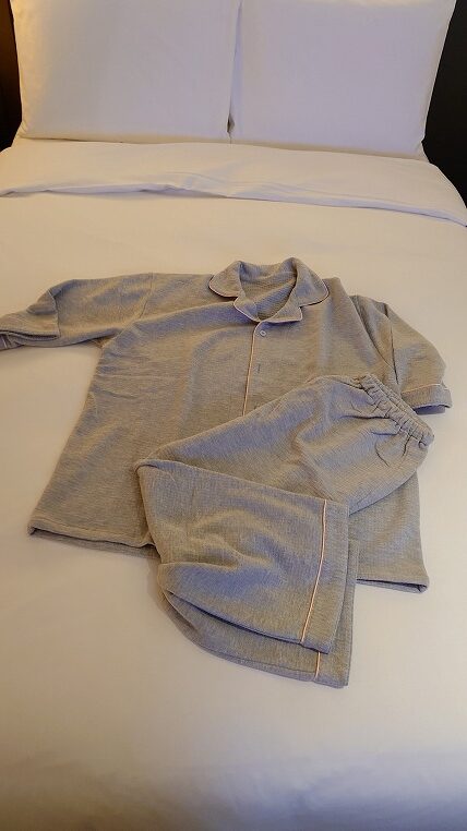 上下セパレートタイプのナイトウェア。私は浴衣やバスローブがあまり好きではないのでこれがあるとほっとします。ちなみにあの変なワンピースタイプのは嫌です。