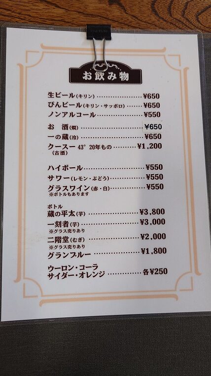 アルコールはあまりこだわりのないラインナップで標準的な価格。