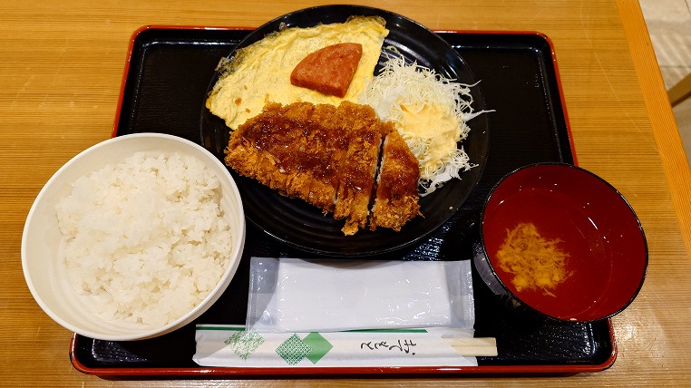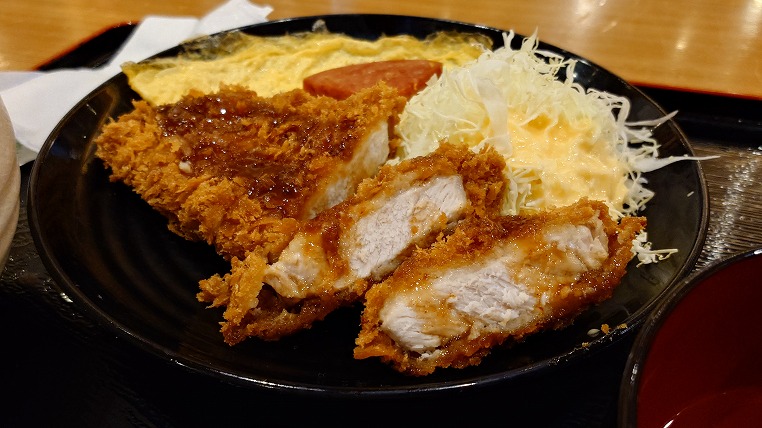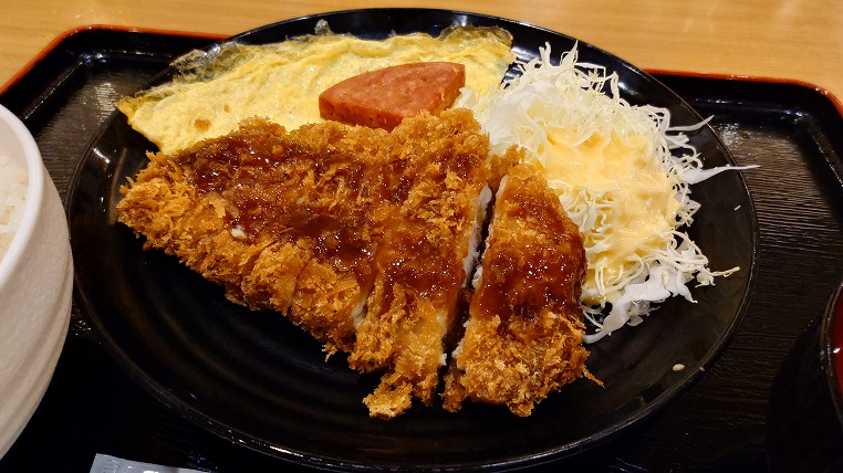 とんかつのボリューム感があまりわからないと思うので断面も。これで690円なのですからコスパ的には最近値上げが続いている空港食堂を凌いで那覇空港で一番かもしれません。