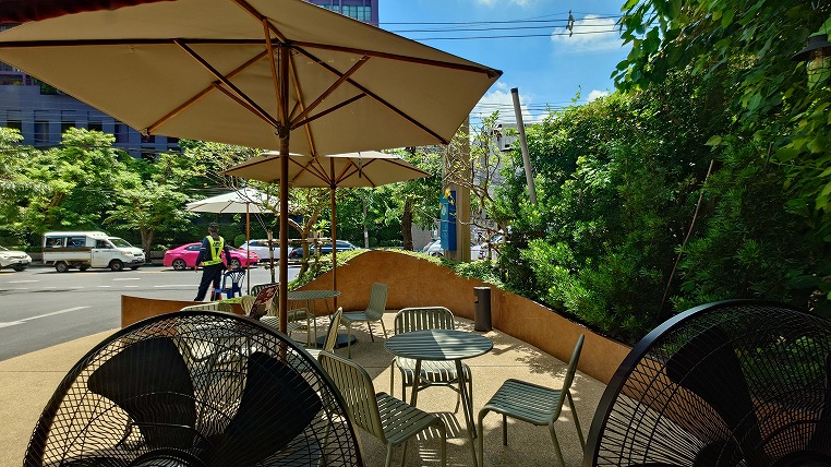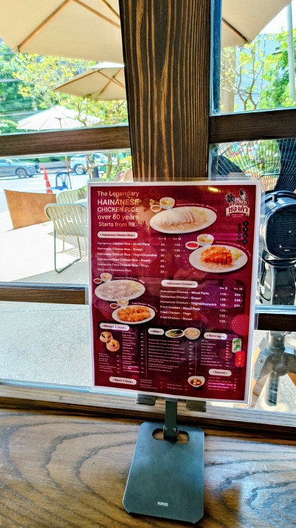 こちらの「カオマンガイ・トーンカム エカマイ」の店内席は5席のみ。テラス席もありますが当たり前ですけど暑いです。テイクアウトやデリバリサービスでの利用が中心なのでしょう。