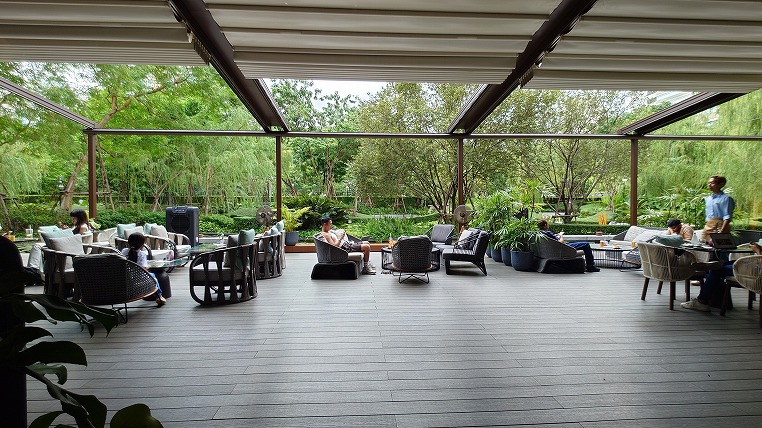 広大なテラス席。バンコクの中心部とは思えないような空間が広がっています。