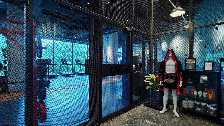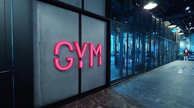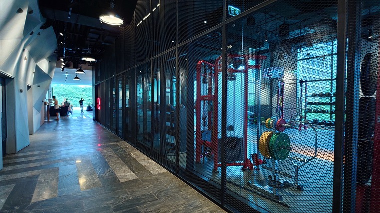 ジムはインダストリアルな雰囲気に仕上がっています。