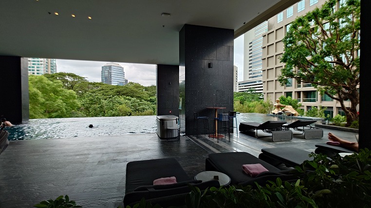 ソーシャルアワーをやっていたプールサイドではアジア人がバシャバシャと泳いでいました。