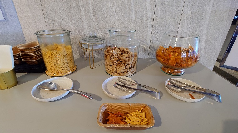 このサービス、ホテルによってもかなり差があります。ニューヨークで宿泊した際は単にグラスワインが提供されているのみでしたが、台北ではおつまみの種類もそれなりに充実していたりしました。