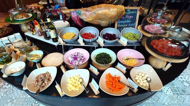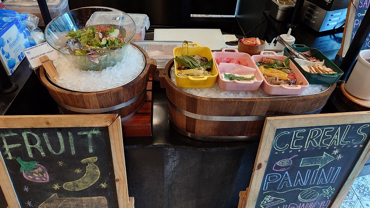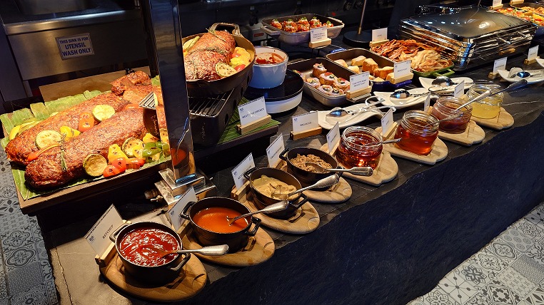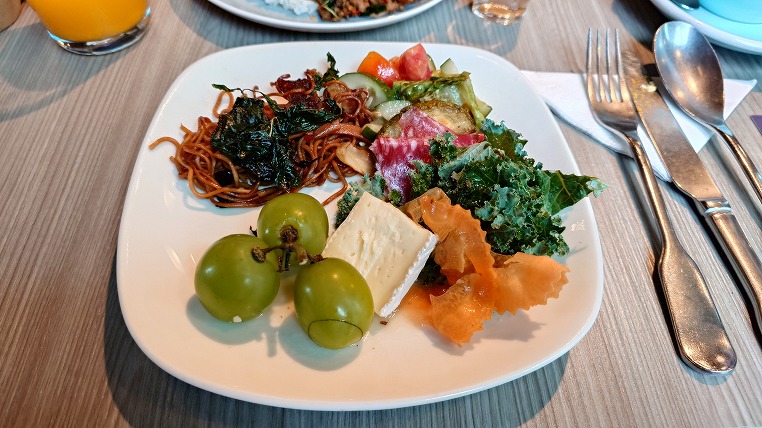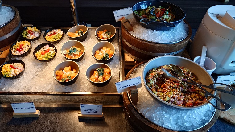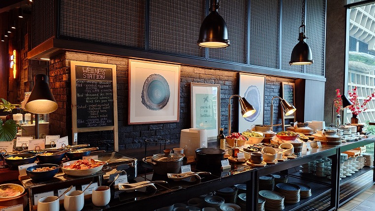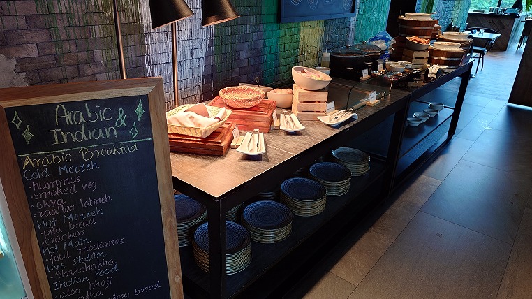 こちらはわかりやすい説明ですね。その通り朝食についても世界各国の料理が集まっており、ビュッフェの料理をとるだけで各国食べ歩きができます。またグルテンフリーや菜食など様々なスタイルにも対応しておりイマドキのホテルのレストら案という感じがします。