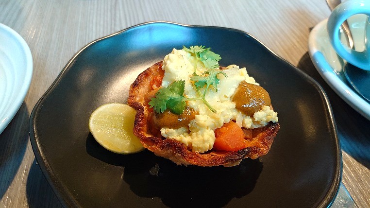 オーダーの卵料理は東南アジア風です。