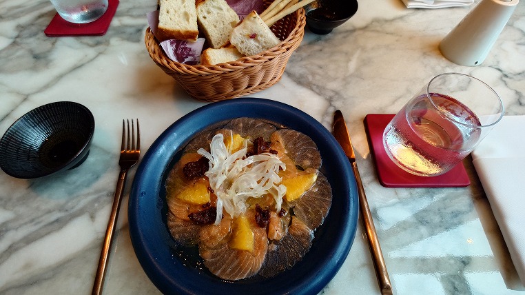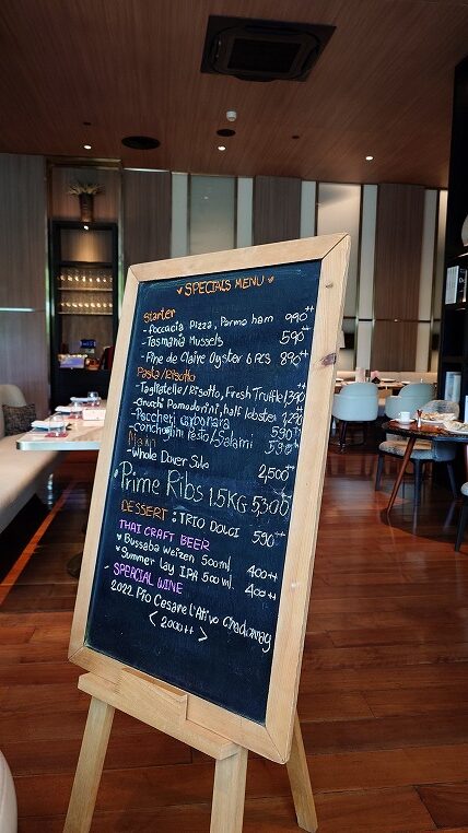シェフが自らやってきて熱心にトリュフを使ったメニューの説明もしてくれましたが、ごめんね今日は安いコースにするって決めてきているのです。フレッシュトリュフを使ったリゾットを食べるとその単品だけで6000円を超えてしまいますね。ランチのセットメニューも安いといってもそこは物価高騰中(というか円安バーツ高)のタイ、税とサービス料まで入れると4000円は超えてしまいます。
