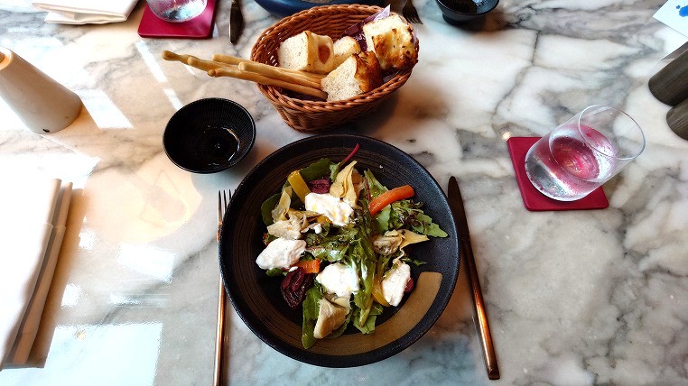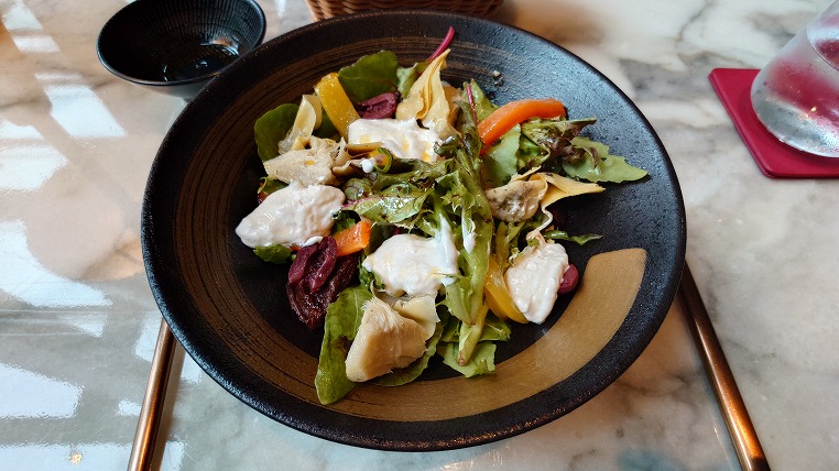 一見シンプルなサラダなのですがこれとても美味しかったですね。ドレッシングまで含めたサラダ全体が良い感じの調和をみせていました。