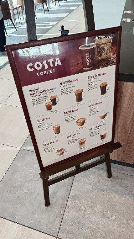 COSTA COFFEEなのは良いですね。街で飲むと結構高いですし。