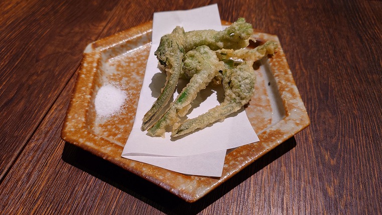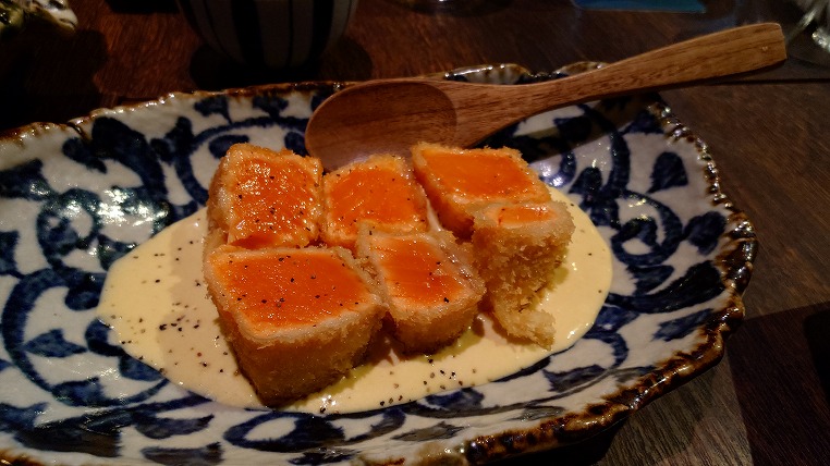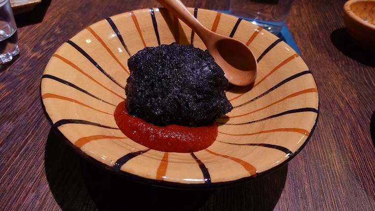 イカ墨のクリーム天ぷら。こちら面白い一品でしたが見た目とは違い美味しいです。