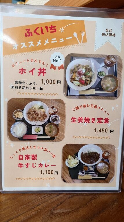 メニュー。昔からある食堂ではないため価格はそれなりにします。