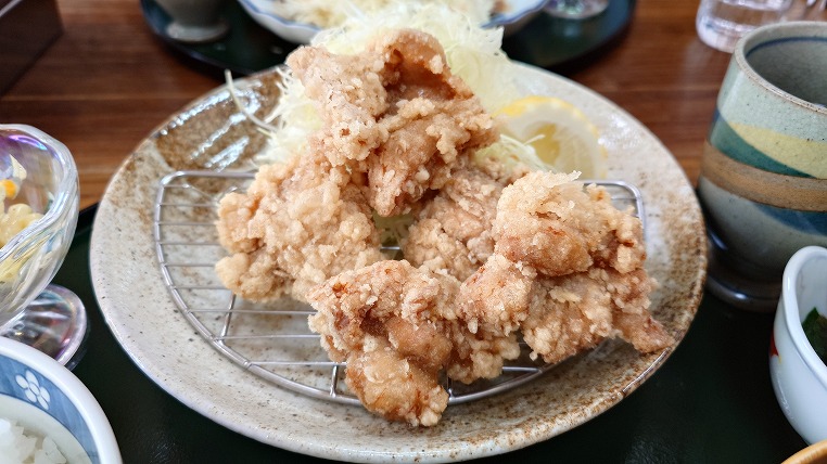 この唐揚げがすごくキマった味なのです。揚げ具合も味付けも文句なしの仕上がりで丁寧に作られたのがわかる一品です。
