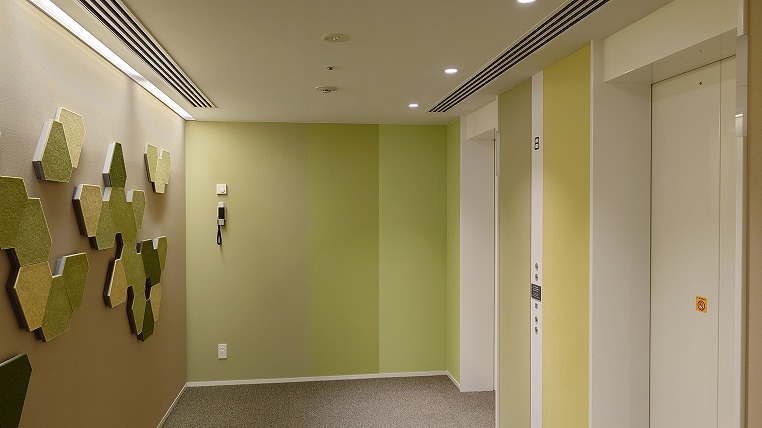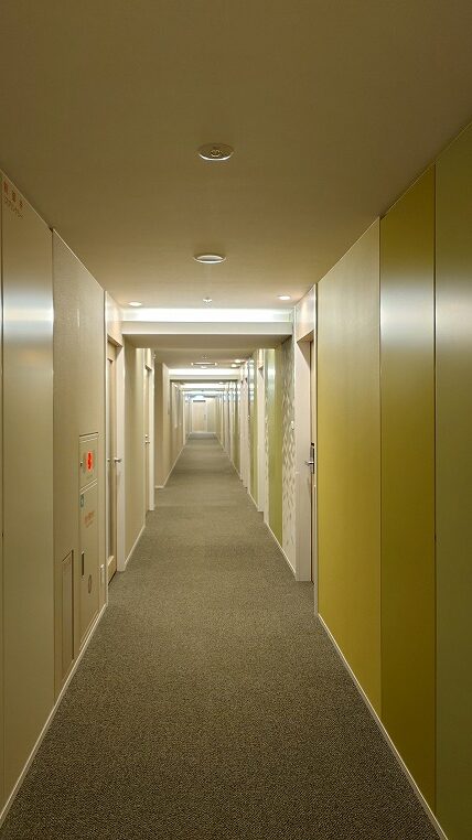いかにもホリデイ・インっぽい内装のエレベーターホールと廊下ですね。