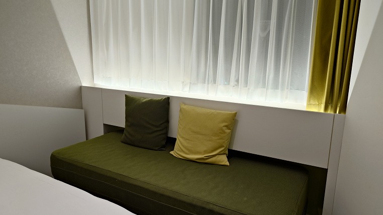 窓側にはおそらくベッドになるであろうソファも置かれています。