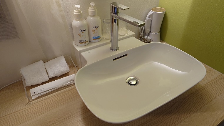 使いやすそうな洗面台。バスアメニティーはホリデイ・イン標準らしいDoveなのですが、正直あまり好きではありません。国際ブランドのホテルだから共通採用はあり得ませんができれば国内だけでもPOLAとかにしてほしいです。
